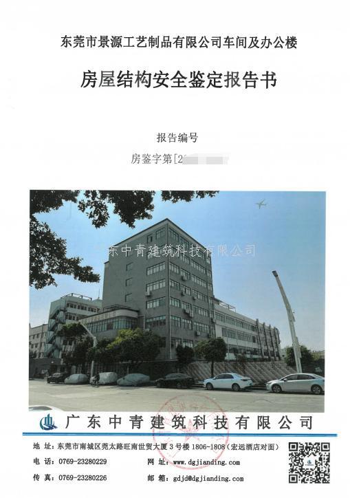 東莞景源工藝制品有限公司位于廣東省東莞市,其車間及辦公樓房屋結構安全鑒定復檢工作已委托我司進行。,能夠有效地了解并掌握建筑的使用狀態、結構現狀和危險等級等基本情況,評定房屋可靠性等級,為后續使用和管理提供科學依據。