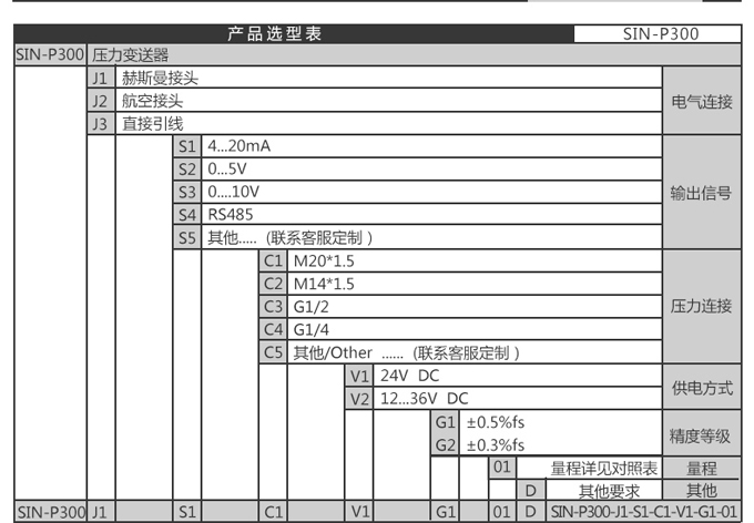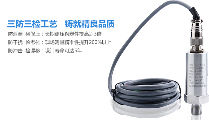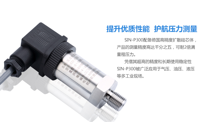 SIN-P300通用型壓力變送器德國進口硅芯片,精度高性能穩定;SIN-P300型通用型壓力變送器采用擴散硅壓力芯體作為敏感元件,內置處理電路將傳感器毫伏信號轉換成標準電壓﹑電流信號輸出,可直接與計算機、控制儀表﹑顯示儀表等相連。選用高穩定性和高可靠性的壓阻式壓力傳感器和高性能的變送器專用電路,整體性能穩定可靠,可進行遠距離信號傳輸。采用一體化全不銹鋼結構,經過多次不銹鋼焊接,實現了全固態設計,安裝方便,具有高抗振性和抗擊性,在惡劣環境中可以長期使用。廣泛應用于工業自動化設備配套以及石油、化工、冶金、電力等控制領域。
